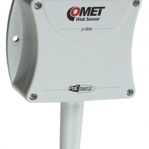 Snímač teploty, vlhkosti a atmosférického tlaku t-line Web Sensor. Napájení snímače po Ethernetovém kabelu (Power over Ethernet). Do vzduchotechnického kanálu, délka stonku 150mm.