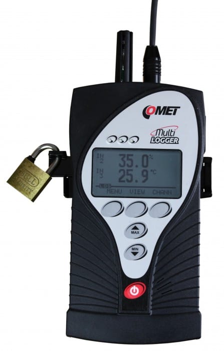 Robustní uzamykatelný držák pro připevnění Multiloggeru na zeď, chránící přístroj před odcizením. Zámek se 3ks klíčů je součástí dodávky.