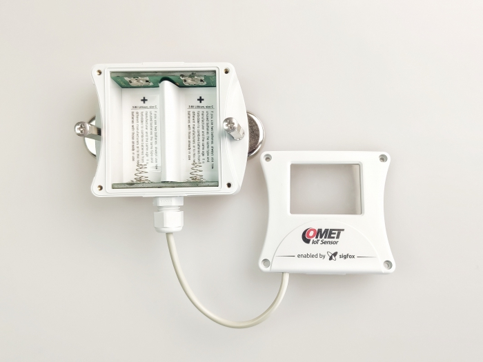 Držák baterií s magnety SP015M je určen pro montáž bezdrátových snímačů s výstupem do sítě Sigfox na magnetické povrchy. Umožňuje napájet snímač z jedné nebo dvou lithiových baterií 3,6 V, rozměr „C“, a tím až šestinásobně prodloužit provoz ve srovnání s výdrží standardní vnitřní baterie rozměru „AA“.