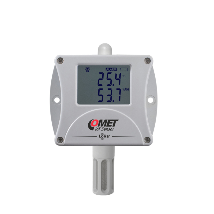 Snímač W3910 s výstupem do sítě LoRaWAN měří teplotu a vlhkost z vestavěného vnitřního čidla s možností instalace do měřeného prostoru díky krytí IP65. Přístroje LoRa jsou napájeny vyměnitelnou baterií s životností až 10 let (standardně 3 roky). K dispozici je také externí napájení s volitelným příslušenstvím. Snímač lze s vhodnou krytkou použít i v náročnějších podmínkách.Naměřené hodnoty jsou odesílány rádiovým přenosem v nastavitelném intervalu (od 5 minut do 24 hodin) do cloudového úložiště COMET Cloud, kde jsou uživateli přístupné prostřednictvím počítače nebo mobilního zařízení. Snímače nabízí dálkové nastavení z COMET Cloud a jsou vybaveny možností sledování až dvou alarmových mezí. Překročení je signalizováno mimořádnou zprávou zaslanou uživateli.