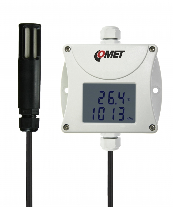 Snímač teploty, vlhkosti, tlaku se sondou T+RV na kabelu 1m. Lze dodat s kabelem sondy délky 1, 2 nebo 4m. Venkovní i vnitřní použití.